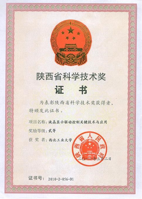 3) “液晶显示驱动控制关键技术与应用”,获得2010年度陕西省科学技术二等奖。(第一完成人)