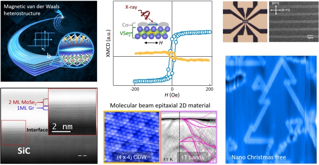 二维层状晶体——由于其具有大部分三维材料所不具备的新颖的光、电、磁特性——而受到青睐。随着2010年诺贝尔物理学奖授予二维层状材料领域的Andre Geim教授和Konstantin Novoselov教授,探寻石墨烯以外的新型二维晶体一直是研究领域的前沿课题。尤其是二维层状材料的铁磁性行为,引起了自旋电子学领域专家和科研人员的极大的研究兴趣。本研究团队目前致力于(1)通过超高真空分子束外延系统制备生长高质量的二维磁性单晶薄膜;(2)探索二维人工磁体的磁学、调控以及相关异质结的特性和功能;以及(3)这些磁体在低功耗、小尺寸和非易失性自旋电子器件中的应用。目前在Advanced Materials,Progress in Materials Science,ACS Nano,Nano Letters,Advanced Functional Materials等杂志上发表论文约20篇。