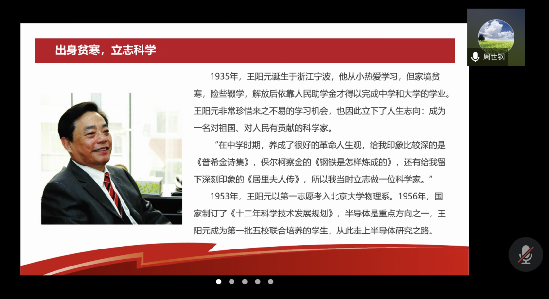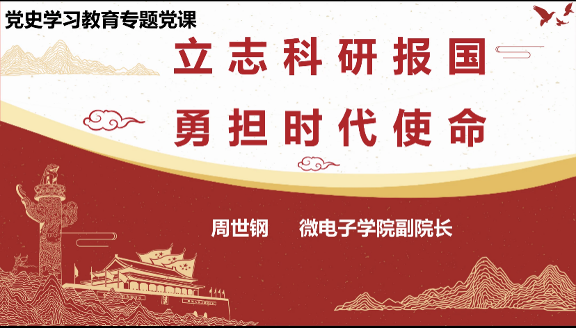 副院长周世钢教授以“立志科研报国,勇担时代使命”为题,为微电子师生联合一支部全体党员讲授党史学习教育主题党课。此次党课从“学习习近平总书记讲话”、“勇担使命、科研报国”、“担当时代使命——黄昆”以及“有国界科学家——王阳元”等四个方面展开。