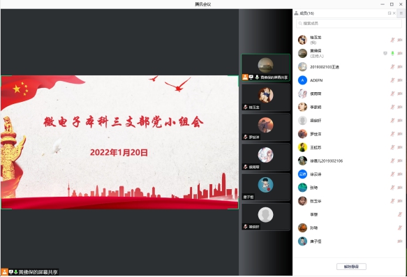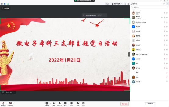 本科三支部在线上召开微电子本科三支部2022年第一次主题党日活动,活动围绕“榜样的力量”这一主题,引导同学们学习身边的优秀学生党员代表。