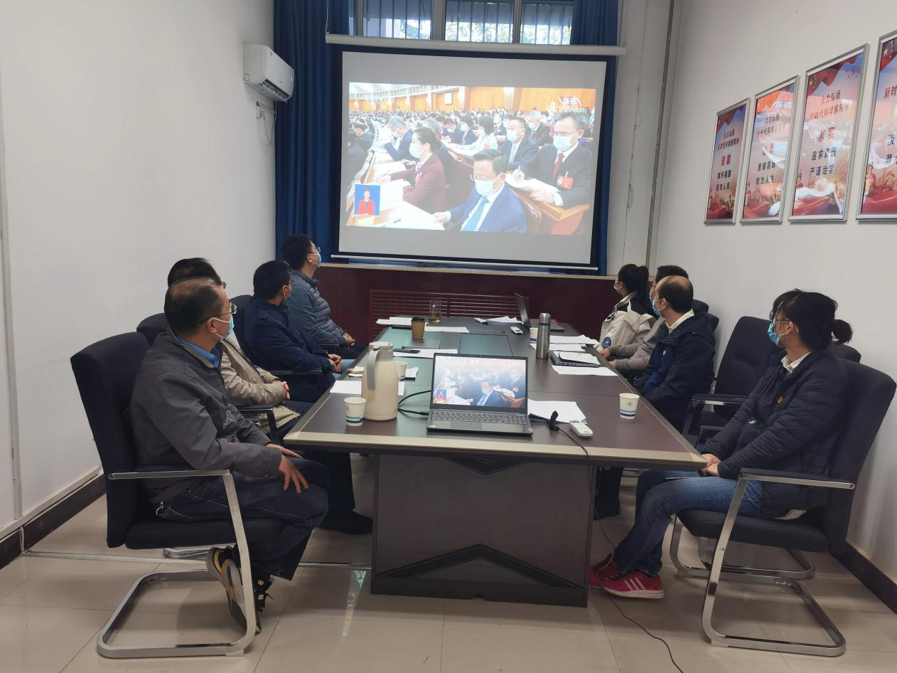 (学院领导班子成员与教工党员代表观看二十大开幕会)