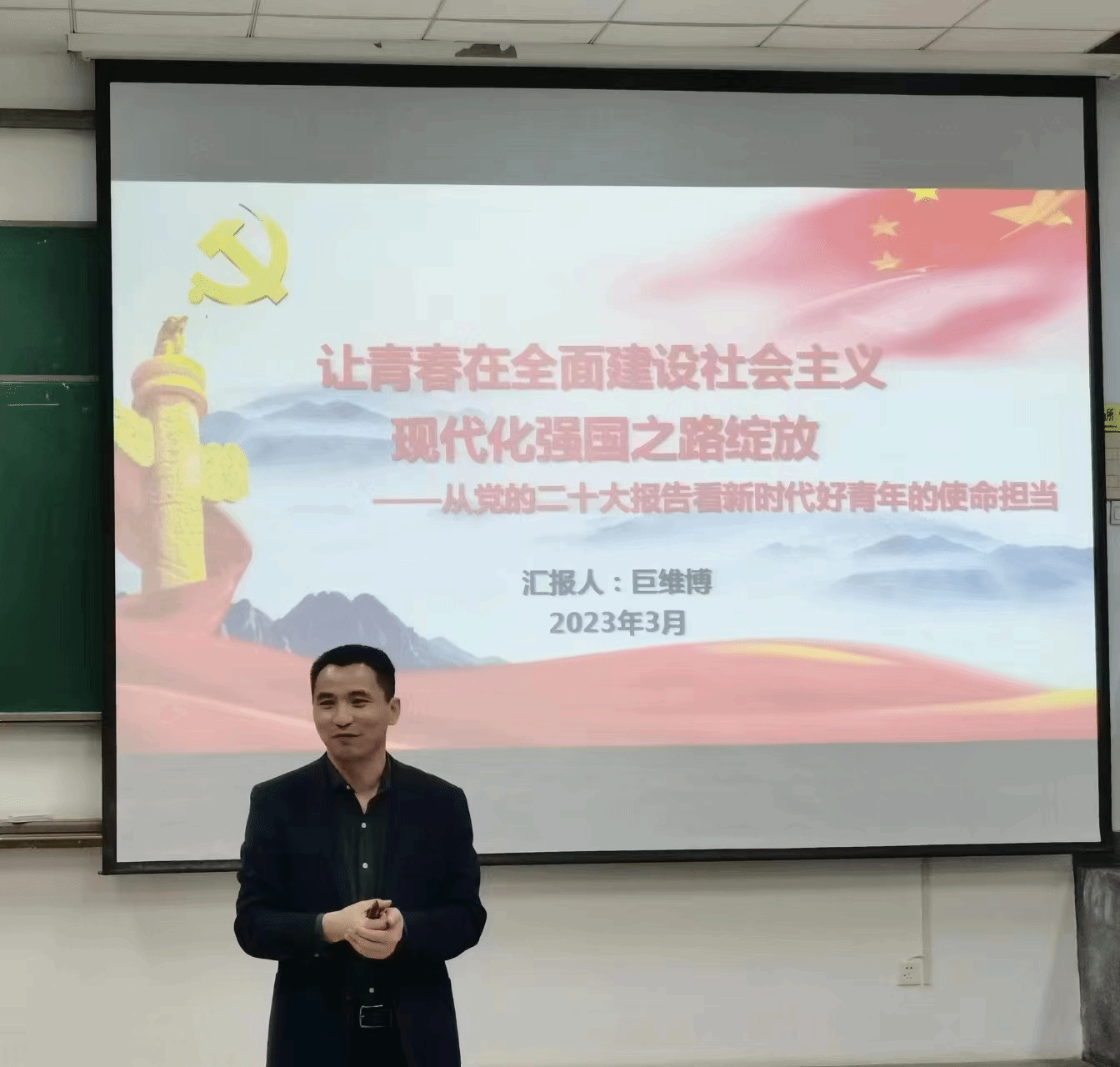 邀请学校教职工理论宣讲团成员、力学与土木建筑学院党委书记巨维博在教西A102做《让青春在全面建设社会主义现代化强国之路绽放——从党的二十大报告看新时代好青年的使命担当》专题宣讲。会议由学院党委书记甘雪涛主持,学院100余名党员、发展对象、入党积极分子参加学习。