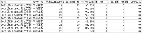 团委各团支部积极贯彻落实相关要求,带动共青团员一同加入学习。其中完成率超过80%的是2020级13班(学习覆盖率95.83%),2019级1班(学习率95.65%),2018级3班(学习覆盖率92.86%),2020级12班(学习率92.59%),2020级14班(学习率91.30%),2019级2班(学习覆盖率88.89%),2019级3班(学习覆盖率86.96%),2019级4班(学习率86.36%)以及2020级15班(学习率84%),在此对以上团支部提出表扬。