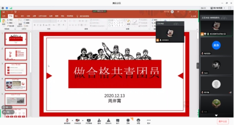 2020级全体团支部通过线上会议对学生团员开展基本理论、基本知识以及优良传统的教育培训活动。本次活动由2020级大团支书周岸霄主持,学院团委书记、2020级学生辅导员汪钰成老师和2020级全体本科生参加。