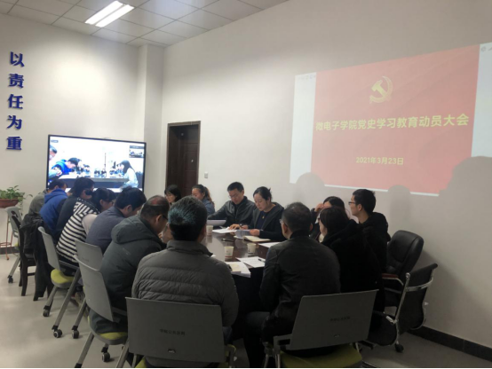 在长安校区学院楼138办公室召开党史学习教育动员大会。学院全体教职工党员以及学生党员代表参加会议,太仓校区教职工党员线上参加。会议由学院党委副书记(主持工作)甘雪涛主持。