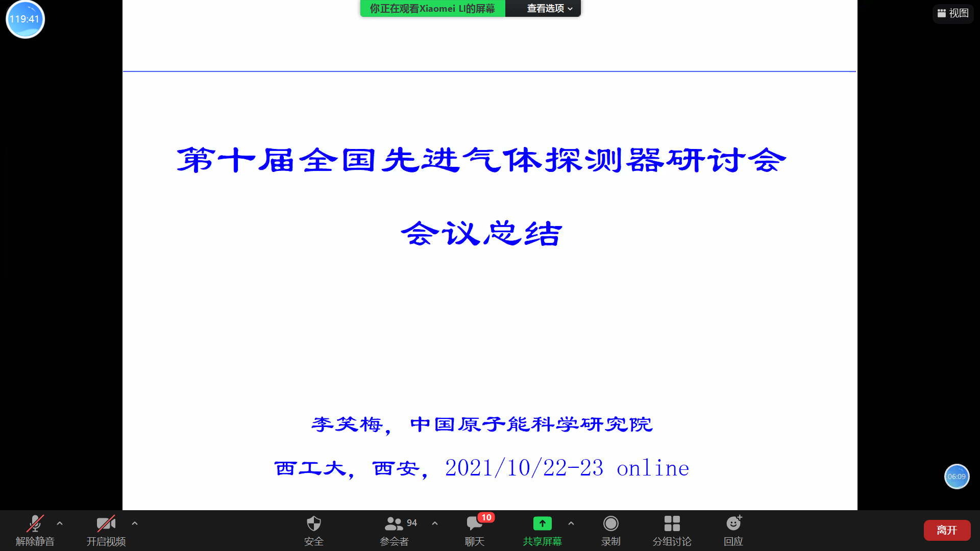 10月22~23日,第十届全国先进气体探测器研讨会通过在线会议形式顺利召开。本次会议由核探测与核电子学国家重点实验室主办,做爱自拍