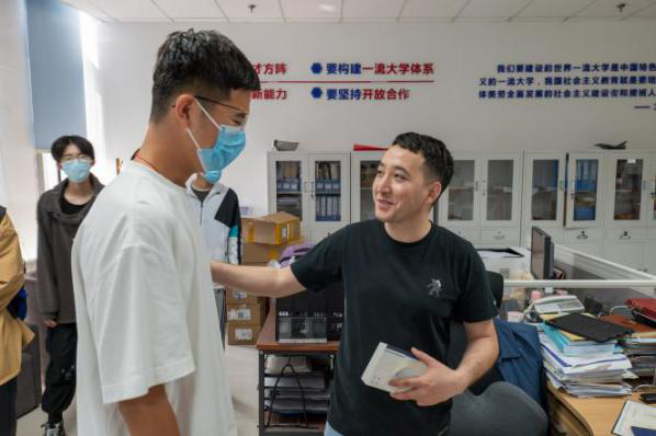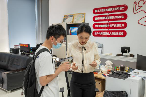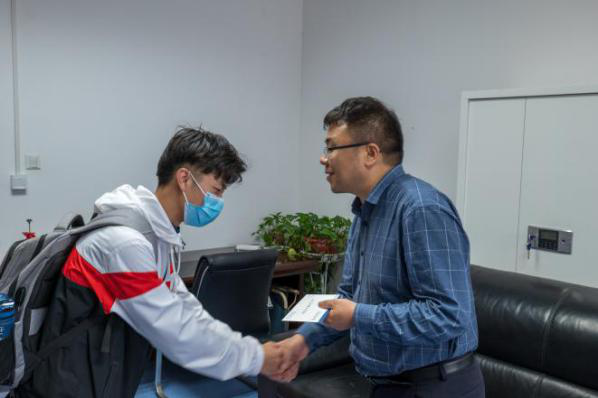 由于来访时仍处于工作时间,老师们在岗位上辛勤工作,同学们不约而同地放轻了脚步,将原本想向老师们表达的万语千言在嘴边浓缩成了一两句简单的感谢。收到明信片的老师们十分感动,与同学亲切交流。就是这样一场特别“安静”的感谢活动,体现出的却是师生双方“相互奔赴”,共同为疫情防控工作贡献自己的一份力量。仪式本身虽被简化,感激之情依旧浓厚。