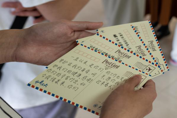 学生工作部及团委,向疫情防控持久战中在台前幕后不辞辛劳、默默付出的老师们,亲手递上精心制作的明信片以及手写信件,寄情于纸,表达深深的敬意与由衷的感谢。