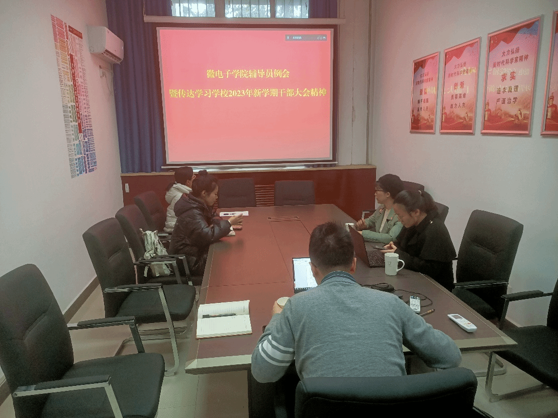 召开辅导员例会暨传达学习学校2023年新学期干部大会精神会议。会议由学院党委副书记余鹏主持,采用线上线下相结合的方式进行。