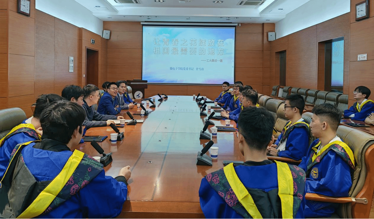 最后,甘雪涛代表学院向同学们顺利毕业表示祝贺,向同学们一直以来对学院发展的支持表示感谢,同时以“让青春之花绽放在祖国最需要的地方”为题,给同学们上了“工大最后一课”。甘雪涛指出,同学们处于国家集成电路科技领域快速发展的关键时期,生正逢时。他希望同学们要对党忠诚、爱党爱国,做又红又专的时代新人;要传承“公诚勇毅”校训,发扬“三实一新”校风,将精神力量融入到未来工作生活中;要保重身体、坚持锻炼,时刻保持良好心态;要坚持学习、勇于创新,不断提升自身核心能力;要会做人、会做事,树立良好价值取向,坚持底线,做对党、对社会有用的人。