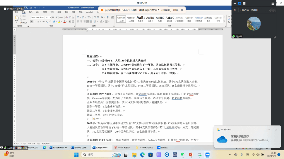会议伊始,主持人阴玥老师对大赛基本情况做了详细介绍。大赛作为国家级竞赛,拥有超过百万元的奖金池,并且由华为技术有限公司提供百万MPW流片支持,同时大赛获奖同学可享受上海市落户加分和杭州市D类人才认定等优厚政策,极具吸引力,届时会有近百所集成电路领域企业到场提供大赛优待招聘会。阴玥老师对本次大赛日程安排也进行了详细讲解,并鼓励同学们积极参加比赛,展示自己的创新能力和实践水平。