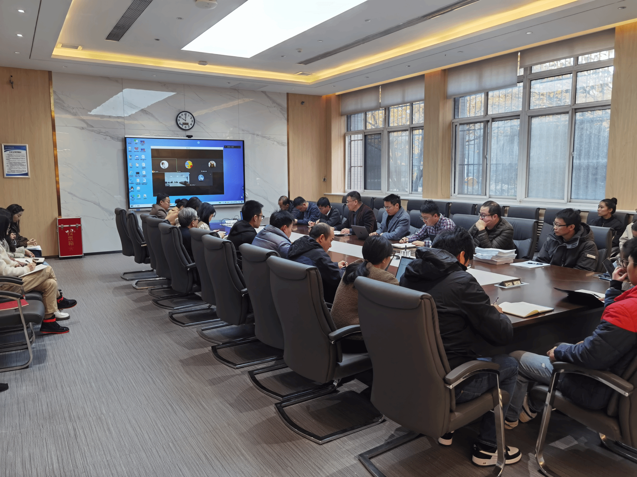 在学院楼159会议室召开全院教职工大会,学院领导班子及全体教职工参加会议,会议由院长马炳和主持。