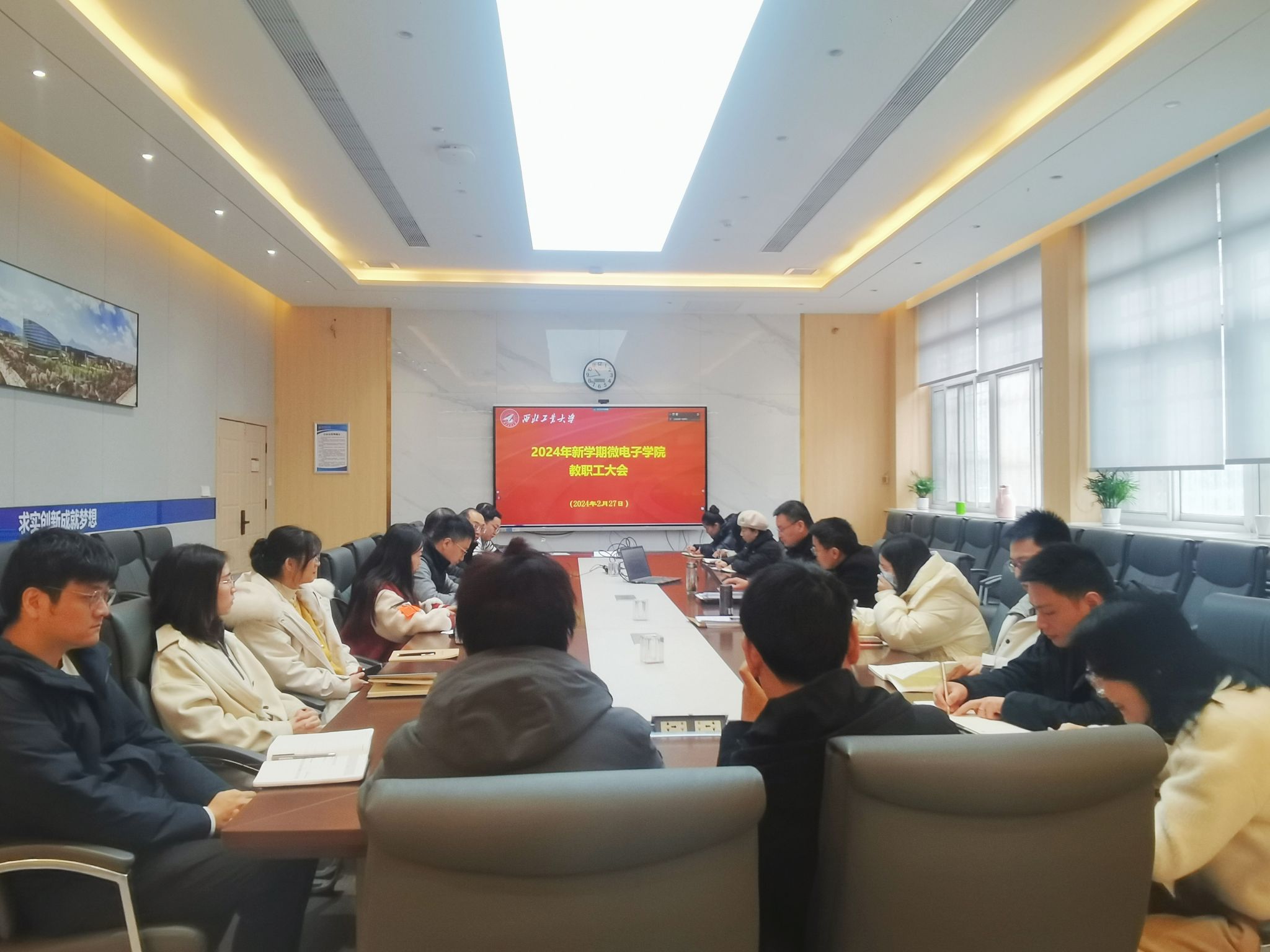 学院院长马炳和传达了学校寒假务虚会、新学期干部会精神,以及宋保维校长务虚会报告和李言荣书记讲话精神。马炳和强调,按照既定目标任务,学院要进一步紧扣核心竞争力,强化特色,筑造高峰;发挥长三角与西部两地区位优势,作好新兴交叉融合大文章,力争重大任务,高标推进科研平台建设,形成高质量、有组织、大协同的科研发展新局面;完善学院人才发展规划,加快团队建设,优化引才育才机制,与学校学院优势特色紧密结合,与大院大所及科技领军企业紧密协同,形成善引才、快成长、强聚力的人才队伍发展新局面;依托太仓和长三角重要院所以及国际化优势,聚集精品资源,完善育人团队,打造“总师”型人才高质量培养的新增长极。结合学校2024年工作要点,马炳和安排部署了学院年度和学期重点工作。