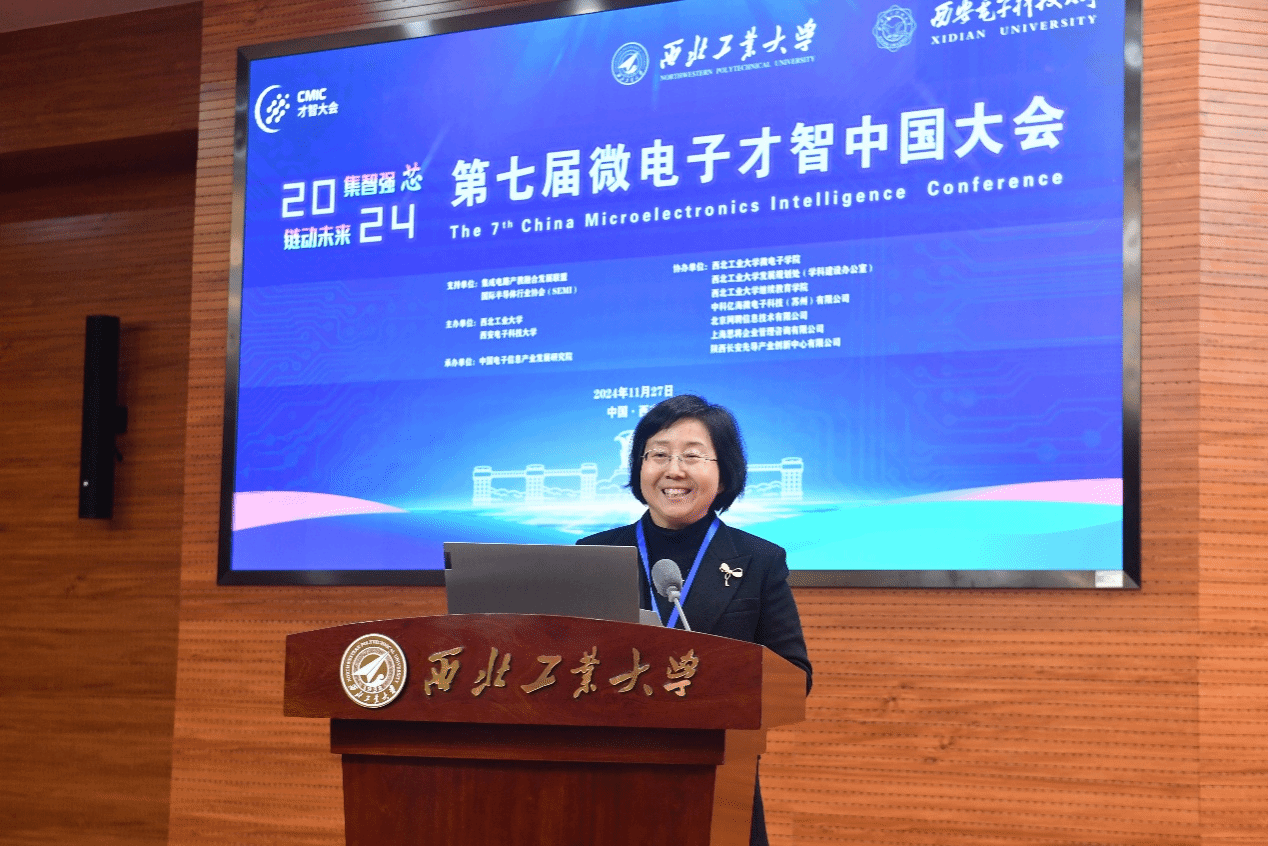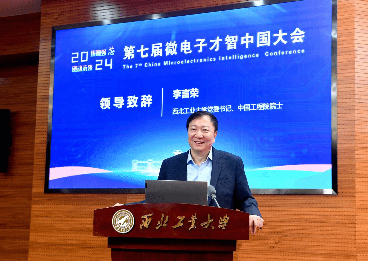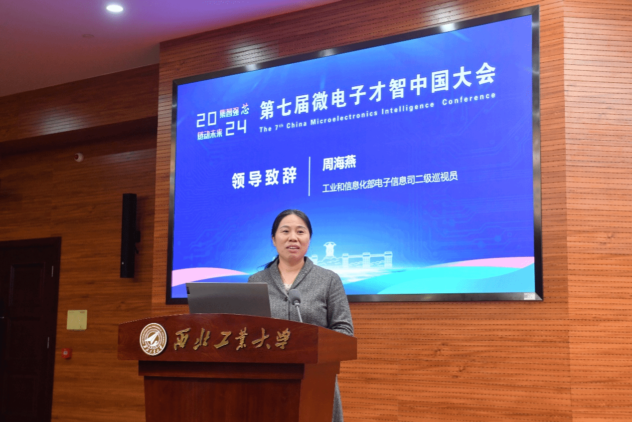 11月27日,第七届微电子才智中国大会在我校友谊校区举行。校党委书记、中国工程院院士李言荣参加会议开幕式并致辞。工业和信息化部电子信息司二级巡视员周海燕,中国电子信息产业发展研究院党委书记刘文强出席开幕式并讲话。中国电子信息产业发展研究院总工程师李宏伟参加会议。论坛开幕式由副校长张艳宁主持。