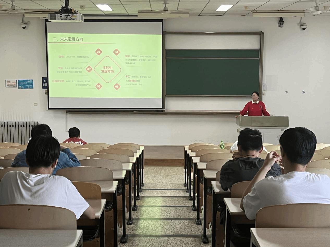 李媛婷对同学们关心的未来发展方向进行了分类解读,针对当前考研、保研的政策变化,结合学院相关数据,为同学们提了参考意见,也对当下的就业趋势进行剖析,为同学们的职业规划提供了宝贵建议。