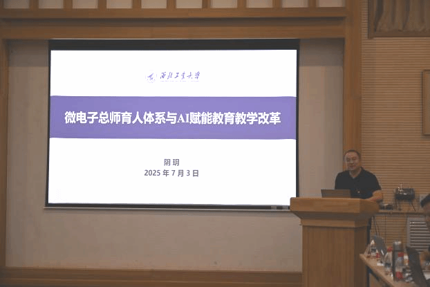 随后,学院党委副书记余鹏,副院长王少熙、阴玥分别聚焦学生创新能力培养和全面发展、“1→0”反向基础研究、总师育人体系和AI教育教学改革作了专题报告。