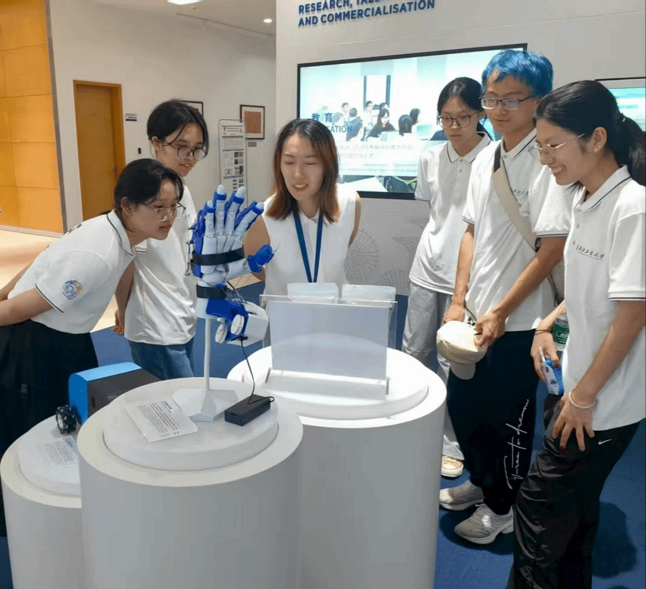 当天下午,实践小队转赴新国大苏研院参观学习。小队首先参观了研究院学生的科研成果,深入学习了产学研一体化相关知识,并参观了相关实验室。随后,实践队与苏研院副院长张鹏先生在校内咖啡馆一同享用下午茶。张院长和蔼可亲,与同学们共同探讨未来规划与自我发展,鼓励同学们在学好专业知识的同时拓宽视野,全面发展,成长为堪当大任的国之栋梁。同学们也积极提问,收获满满。