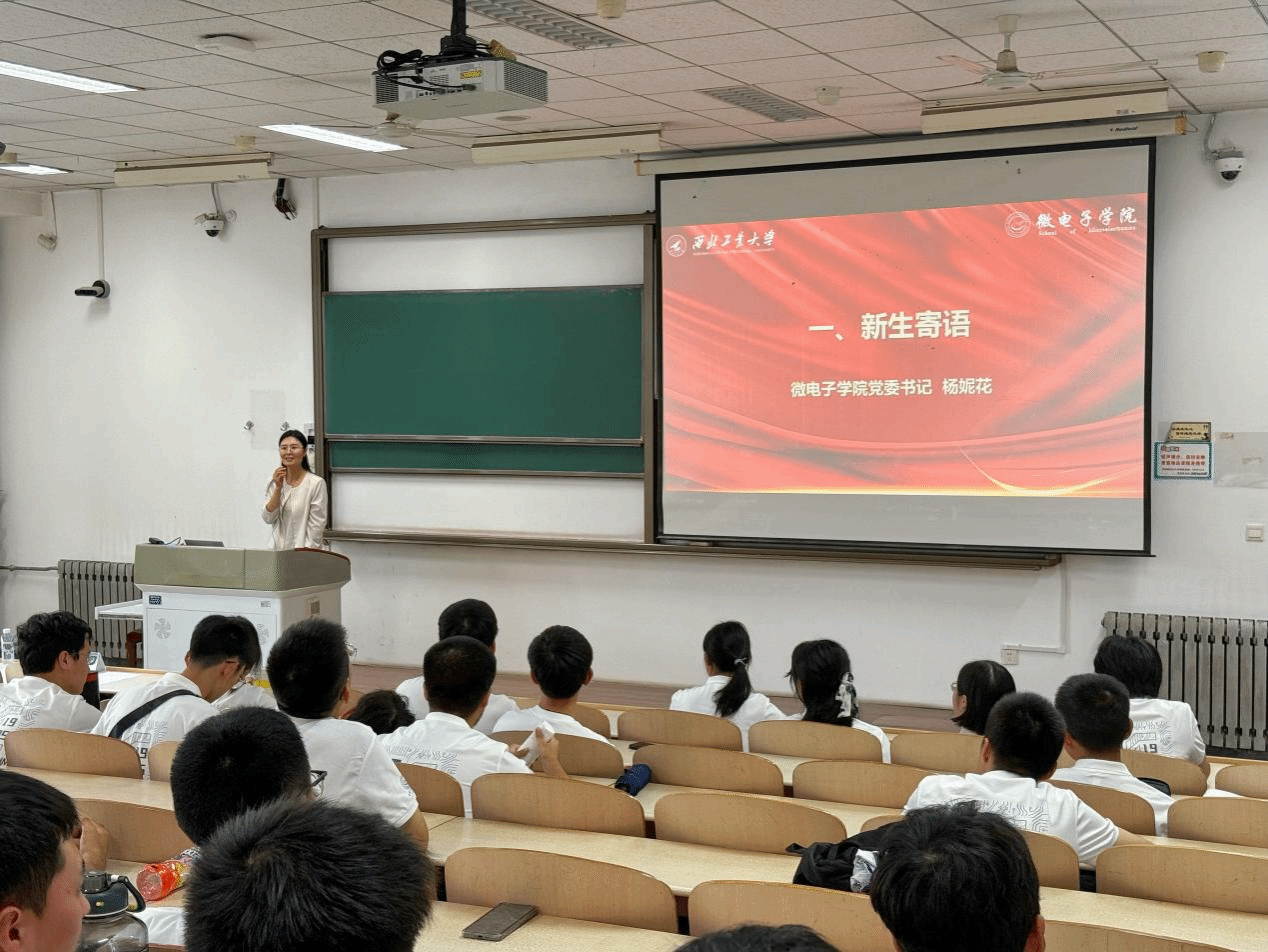 见面会伊始,由杨妮花书记为新生送上寄语。杨书记通过回顾西工大校史,强调学校自1938年创办以来始终与国家命运紧密相连,同时学校在集成电路领域有着深厚的积淀与瞩目的成就,培养了一大批行业领军人才,希望新生能够践行公诚勇毅校训,发扬三实一新校风,牢记为国铸重剑的使命担当。