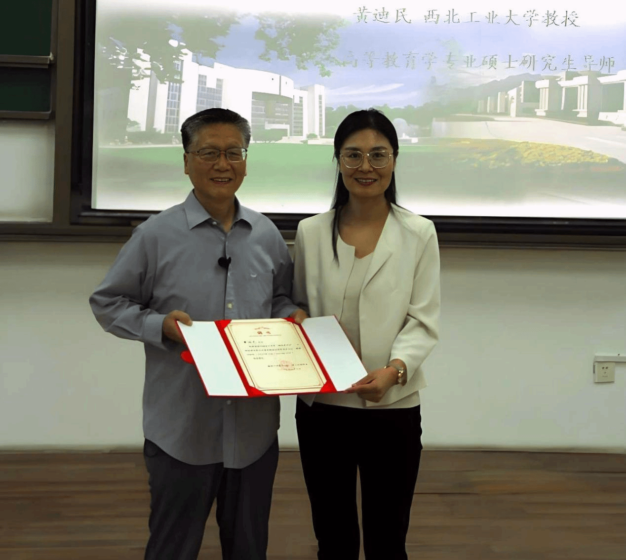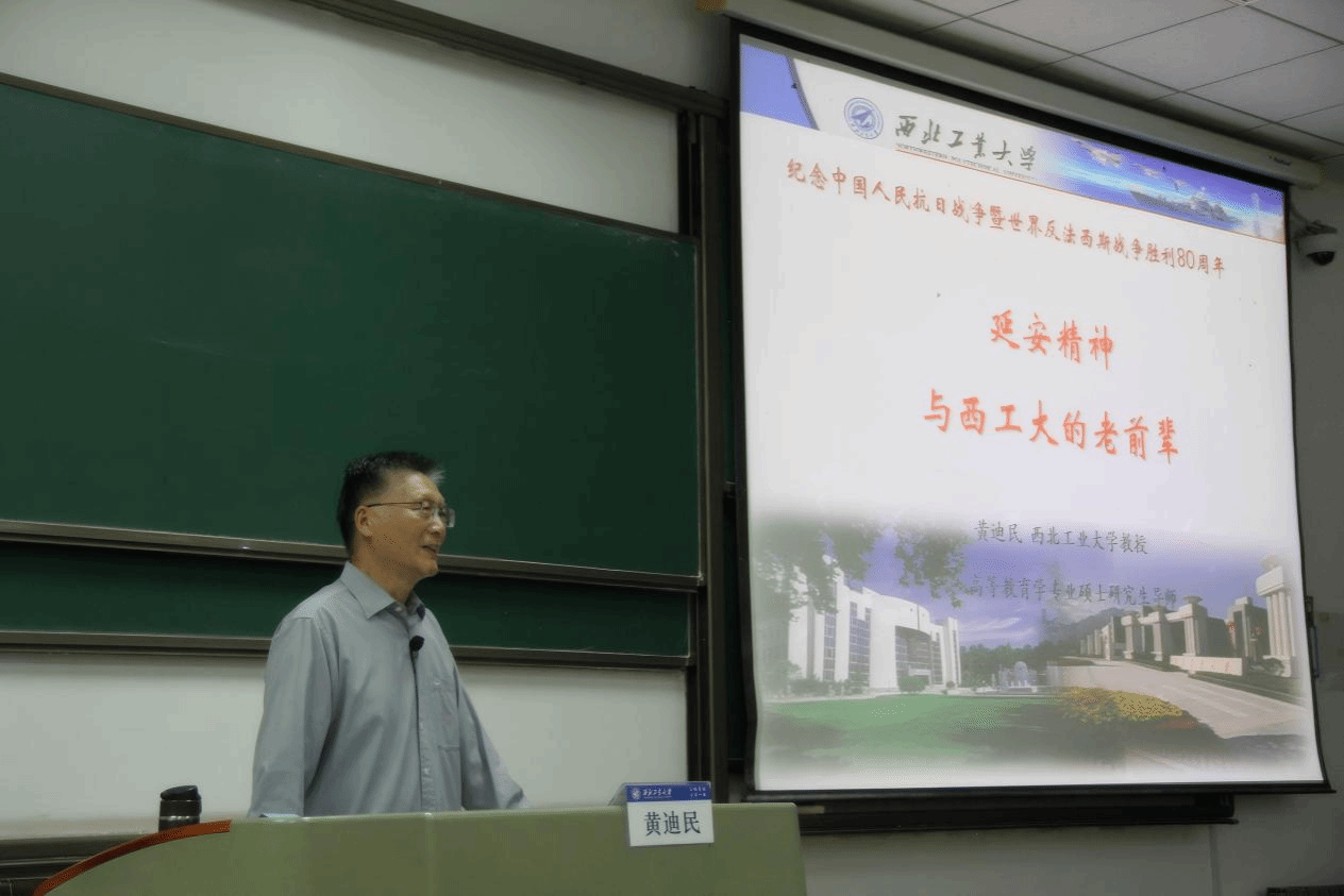 见面会最后,学校退休老教师黄迪民以“延安精神与西工大的老前辈”为主题为新生讲思政课。学院党委书记杨妮花为黄迪民老师颁发“银发宣讲员”聘书。黄老师以抗日战争暨世界反法西斯胜利80周年为切入点,讲述革命战争年代学校的发展、校领导在战火中科研报国的故事,让同学们深刻感受到西工大精神的内涵,引发强烈共鸣,对学校有了更深的认同感、自豪感。