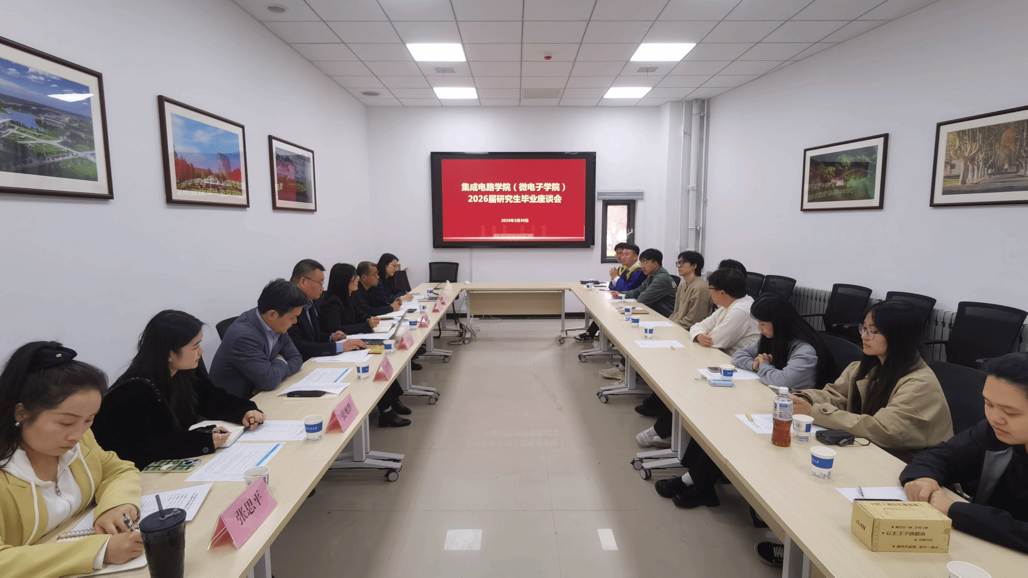 在长安校区IC楼111会议室召开2026届研究生毕业生代表座谈会暨“工大最后一课”。学院院长马炳和、党委书记杨妮花、学院副院长王少熙、办公室主任景省利、党委组织员张思平、研究生教学秘书张奥黔、研究生辅导员王淼及2026届研究生毕业生代表参加会议。会议由杨妮花主持。