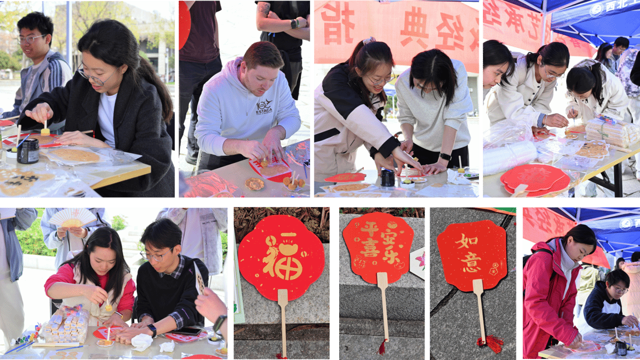 纸扇绘制区笔墨飘香,梅兰竹菊的清雅与校园地标剪影相映,一笔一画间,传统书画艺术与校园情怀深度交融;