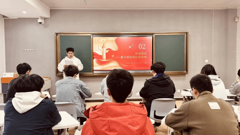 随后进入“传颂事迹——薪火相传的红色回响”环节,由陈昱廷、董审言、苏春昊、郑子祥和黄馨月5位同学依次分享家乡的红色事迹。
